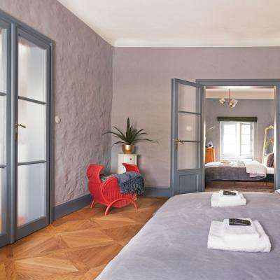 This newly renovated luxury apartment is the perfect accommodation for 4 people with two comfortable double beds in two separate bedrooms, a kitchen, two bathrooms, a dining area and a cozy living room with a spacious sofa.